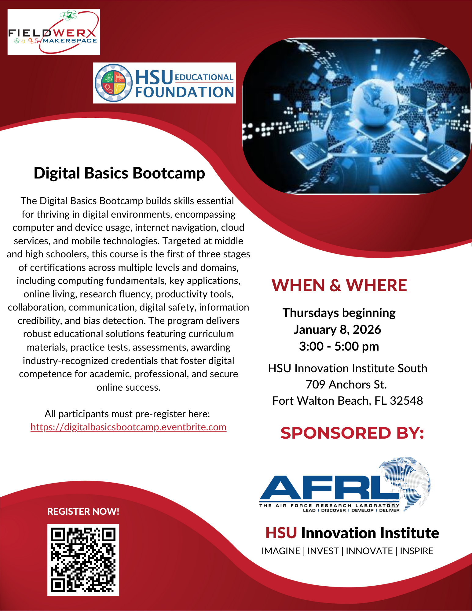The Digital Basics Bootcamp builds skills essential for thriving in digital environments, encompassing computer and device usage, internet navigation, cloud services, and mobile technologies. Targeted at middle and high schoolers, this course is the first of three stages of certifications across multiple levels and domains, including computing fundamentals, key applications, online living, research fluency, productivity tools, collaboration, communication, digital safety, information credibility, and bias detection. The program delivers robust educational solutions featuring curriculum materials, practice tests, assessments, awarding industry-recognized credentials that foster digital competence for academic, professional, and secure online success.